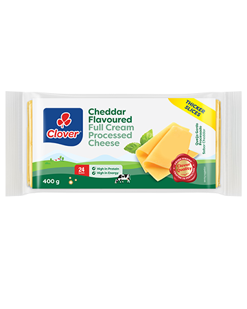 Clover Cheese is manufactured using pasteurised standardised cow’s milk according to the prescribed work instructions. Clover’s Cheese range offers good quality and value for money and is ideal to use in lunch boxes, on sandwiches, toasted sandwiches or in delicious salads and meals. Our Clover Cheese range includes a variety of different cheeses ranging from Cheddar, Gouda, Tussers, White Cheddar and Mature Cheddar Cheese Blocks, to Feta portions in a variety of Flavours including Plain, Herb and Black pepper. In addition, our Processed Cheese range includes Clover Individually wrapped Slices in Cheddar & Gouda Flavours, Slice O Nice Individually wrapped Slices and Berg Processed Cheese Blocks. Clover Cheese is Way Better!