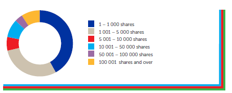 | 1 001 – 5 000 shares | 760 | 29,57 | 1 881 322 | 1,00 |