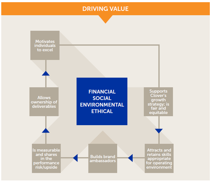 Clover’s remuneration structure comprises three components and are aligned with achieving Group objectives: