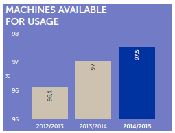 The graph above depicts the percentage of machines that were available for usage in production. Please refer to the next page where the utilisation thereof during the year is discussed.
