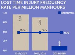 | Lost Time Injury Frequency Rate (i.e. the number of LTIs per 200 000 person hours worked) | 0,638 |