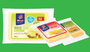 Clover’s range of cheesesFor over 100 years, Clover cheeses have been making mealtimes more delicious. This is because they are made according to the highest quality standards, with care and dedication. Clover is the market leader in the pre-packed cheese segment with Clover and Elite cheese sharing in this category. Clover’s award winning individually wrapped processed cheese is indicative of Clover’s clear ambition to provide consumers with the highest quality, best tasting products. New Clover individually wrapped processed cheese slices are preservative free and made with great tasting, excellent quality ingredients. Sacca cheese enjoys great heritage as it has been available since 1914. Elite Gouda is the only gouda in South Africa that is made in the traditional way. |