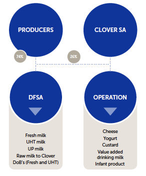 DFSA will still supply all of Clover's milk requirements as long as it can guarantee supply at competitive prices. It is important to note that Clover’s Unique Milk Procurement System (CUMPS) aimed at balancing Clover’s raw milk intake with expected dairy sales, will remain in its current format.